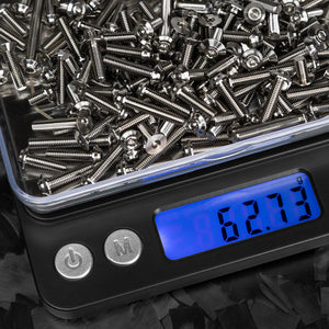 With a max weight of 500g and increments of 0.01g, the 1up Pro Pit Scale gives you the capacity and precision you need, build after build. It features stylish laser etched 1up logos on a durable stainless steel face, a blue backlit LED screen, 9 weighing modes, and a full-capacity tare range.