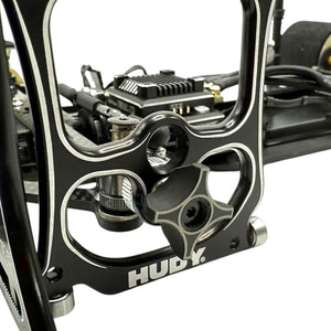 The MR33 Setup Nut is a small, very useful product for setup work on Awesomatix 1:12 scale pan cars. Normally, with Awesomatix, you simply plug in the setup system, then add the washers, and finally tighten the wheel bolt. With this specially manufactured nut, you can skip the washers and the additional bolt—everything is secured directly. Small but effective—and a real time and stress saver!