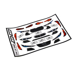 Together with the help from one of the best graphic designer in the USA we created the RACE Headlight Sticker set for 1/10 bodyshells. Overall there are three different grills as well as head- and tail-light pairs on the sheet.