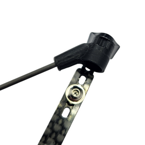 The anti-tuck attaches to the body mount with the included M3x6 Button Head Screws which attach from underneath. The 1.5mm Carbon Rod connects the upper and lower sections. The lower section is printed from a flexible material which absorbs the force from hits, saving your carbon rods from breakage.