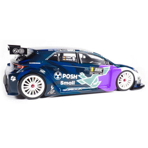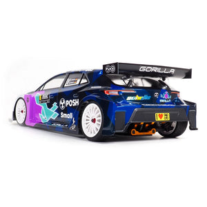 The Gorilla body shell for 190mm FWD touring cars is ZooRacing‘s latest 1/10th scale on-road body shell and our idea of a high-performance front-wheel drive body shell for this ever growing and very fun class. The goal was to create a stylish yet efficient body with advanced aerodynamics, while still offering a somewhat scale look that takes design cues from a famous Japanese hatchback car and meets with current FWD touring car body shell regulations. The Gorilla features a futuristic, compact design with a low roof line, wide wheel arches and a huge front splitter, all of which add to very balanced downforce, which is further helped by a large rear wing and integrated roof spoiler.