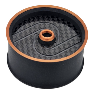 The Metallic Bronze ring provides a great accent against the Carbon with the stacked INOV8 Logo engraved! The wheel is finished off by a black/bronze screw washer which perfectly fits the standard Sanwa screw and looks great at the same time!