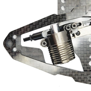 Firstly, these arms feature a larger profile than the kit arms to increase the rigidity of the arm. They also feature a carbon rib which further increases the stiffness of the arm at the point of shock attachment. This creates less twisting of the arm and reduces unwanted inputs into the shock absorbers due to arm flex. In our testing these arms increased corner speed by reducing the flex and grip the arm was generating, which made the car more free in the corner.