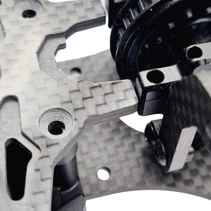Upon resting, there is a 0.3mm gap between the bulkheads and this support, to prevent any rubbing and tweaking. This support will only be active in a crash! This provides the optimal solution to keeping your chassis on your brand new BD10 safe, whilst looking great at the same time!