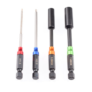 The RUDDOG Power Tool Wrench Set is the perfect set for all cordless screwdrivers. With the standard 1/4 inch attachment, the tips fit all common cordless screwdrivers, making screwing on your model even easier. Available in two sets: either with 1.5mm, 2.0mm, 2.5mm, and 3.0mm hex tips or as a set with 1.5mm, 2.0mm hex tips, and 5.5mm and 7.0mm nut drivers.