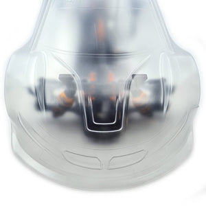 With modern bodyshells being so low and thin, the downforce generated by the bodyshell isn't effectively transferred to the car due to the flex of the body, especially in the front-mid section. Our Front Body Stabilizer transfers the downforce directly into the top of the front shocks, increasing your steering in corners, and stability on the straights.