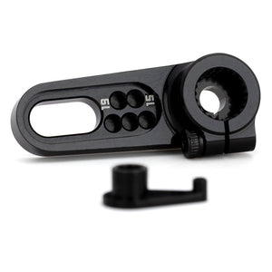 CNC machined from 7075-T6 aluminum, this heavy-duty horn delivers exceptional strength and low flex while keeping weight to a minimum. The adjustable linkage mount can be set in 1mm increments from 15 to 19mm, allowing you to lock in your preferred servo horn length to get the perfect feel in all track conditions.