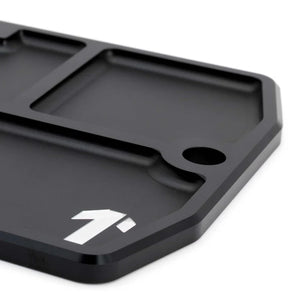 Introducing the 1up Racing Pro Pit Tray, the ultimate blend of form and function for your pit space. Precision-machined from high-quality aluminum featuring dual-finish anodizing with satin back surfaces and gloss black chamfers. A beautifully machined 1up icon logo adds to the professional look that stands out on any workbench. Designed with just the right depth, our tray securely holds your parts during builds and maintenance, while smooth filleted corners make scooping up small screws, shims, and small parts effortless.