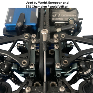 Perfect for those lightweight bodies, our hood stiffener makes contact with the body, reducing the bodies flex and improving downforce generated by the hood and windscreen directly to the car. This part screws directly to the bumper and can be used with both foam and 3d printed bumpers. The screw at the top of the assembly can then be adjusted to set the height perfectly to the body. These weigh in at only 1.5g, making them the lightest hood stiffener on the market!