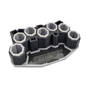 Using the latest FDM 3D Printing Technology, the multi-coloured plastic print provides great strength and durability while looking stunning! The stand features a real carbon fibre RC MAKER engraved tray insert to top it off, and some rubber anti-slip feet underneath to make sure it stays put in your pit!