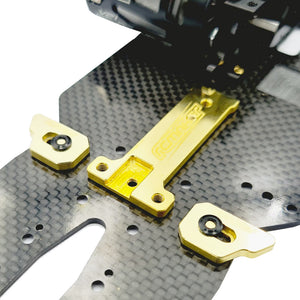 The pair also includes carbon fiber shims for shimming the weight off the chassis to increase flex. The weights can be screwed directly to the chassis without any shim to reduce flex.