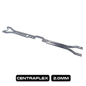 As well as this tuning option, we also have braces which can be cut on the topdeck to even further alter the flex characteristics, by changing the flex between the bulkheads, and also moving the flex closer to the bulkheads. The rear of our CentraFlex features a unique flex link which provides a dampened flex movement of the rear bulkheads which gives more rotation to the car.