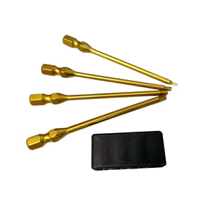The set contains the following, hardened inserts with the common 1/4 inch mount: