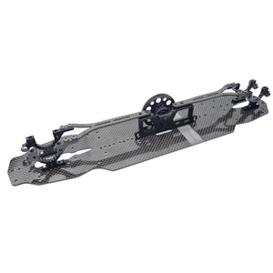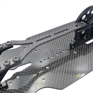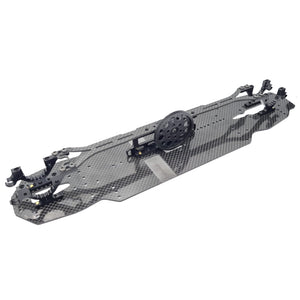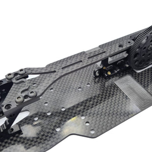 The rear features our signature flex dampener brace, which allows a medium amount of flex across the rear bulkheads, and has proven to be very successful on a very large number of tracks and conditions across many different brands of chassis!